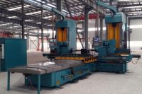 數(shù)控五軸雙立柱鏜床為臥式雙面布置,主要適合加工對稱度要求高的孔的鏜削加工。并能附帶高速銑削 低速銑削鉆孔等功能。工件放在專用移動工作臺上,左右分別兩個立柱帶可橫向移動的滑臺,滑臺上放動力頭。移動工作臺、橫進滑臺及立柱滑臺由數(shù)控系統(tǒng)控制,主軸轉速通過變頻器調速。該機床由五軸數(shù)控系統(tǒng)控制,配備套懸掛式控制箱,并配可持式手脈。機床配有獨立的液壓站,能夠實現(xiàn)立柱滑臺的自動鎖緊。運動部分采用滾珠絲杠連接。機床配有獨立的電器柜,并有風冷裝置。